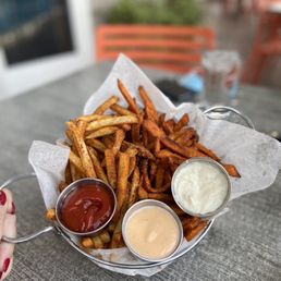 This was such a cute spot in downtown Phx! The restaurant was super accommodating with my reservation and even was able to add to my already large party when I got to the restaurant! The service was great, loved the martinis (def try the lavender one, it was so good!). The food was also great and there was a lot of variety so that every girly with dietary restrictions was still able to find something they liked! The appetizers were also large and they were great to feed the table. Recommend the rosemary and sweet potato fries! We also loved the buffalo cauliflower. It looks like this place is a great brunch spot too, we came for dinner but will definitely be checking it out again for brunch!